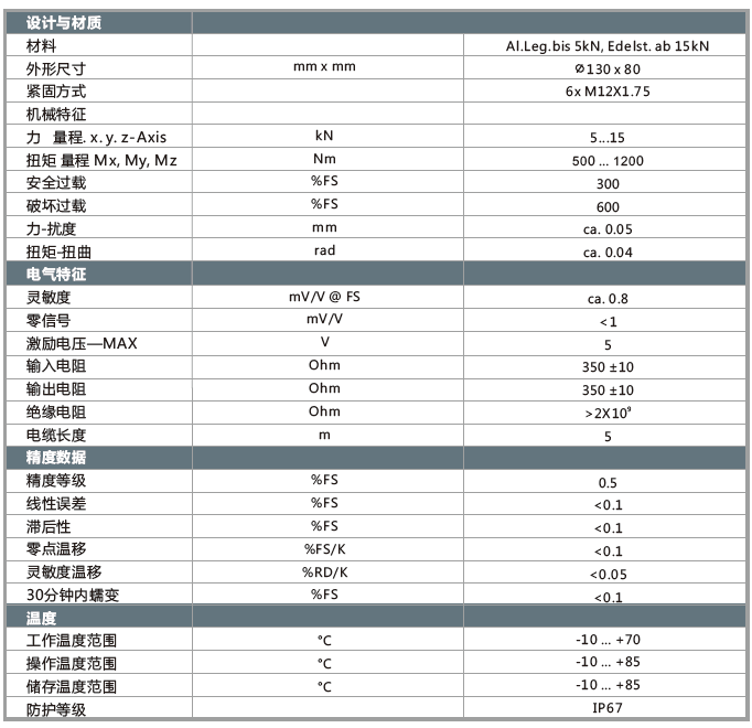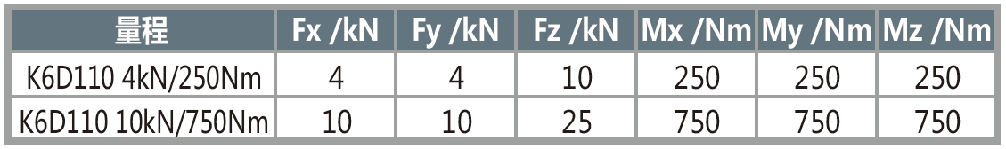 力量程:Fxyz:5kN~15kN